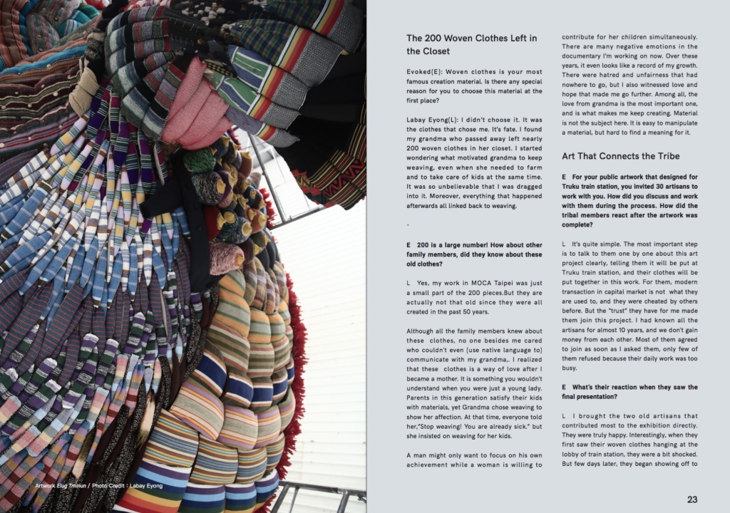 本期將以「原住民紡織」為題,訪談了當代藝術家、原住民織女、工藝品牌、年輕行動者、博物館學者等不同角色,傾聽他們對於原住民紡織工藝的認知跟思考 —— 這段釐清問題、找尋答案的過程,正如搓製絲線、編織纏繞,而後延伸成形,點出現下常見的文化挪用、智慧財產權等問題,以及部落年輕一輩面對新形態資本經濟,掙扎著該如何保存、轉化,傳統技藝才能應用於當代社會中的現況。